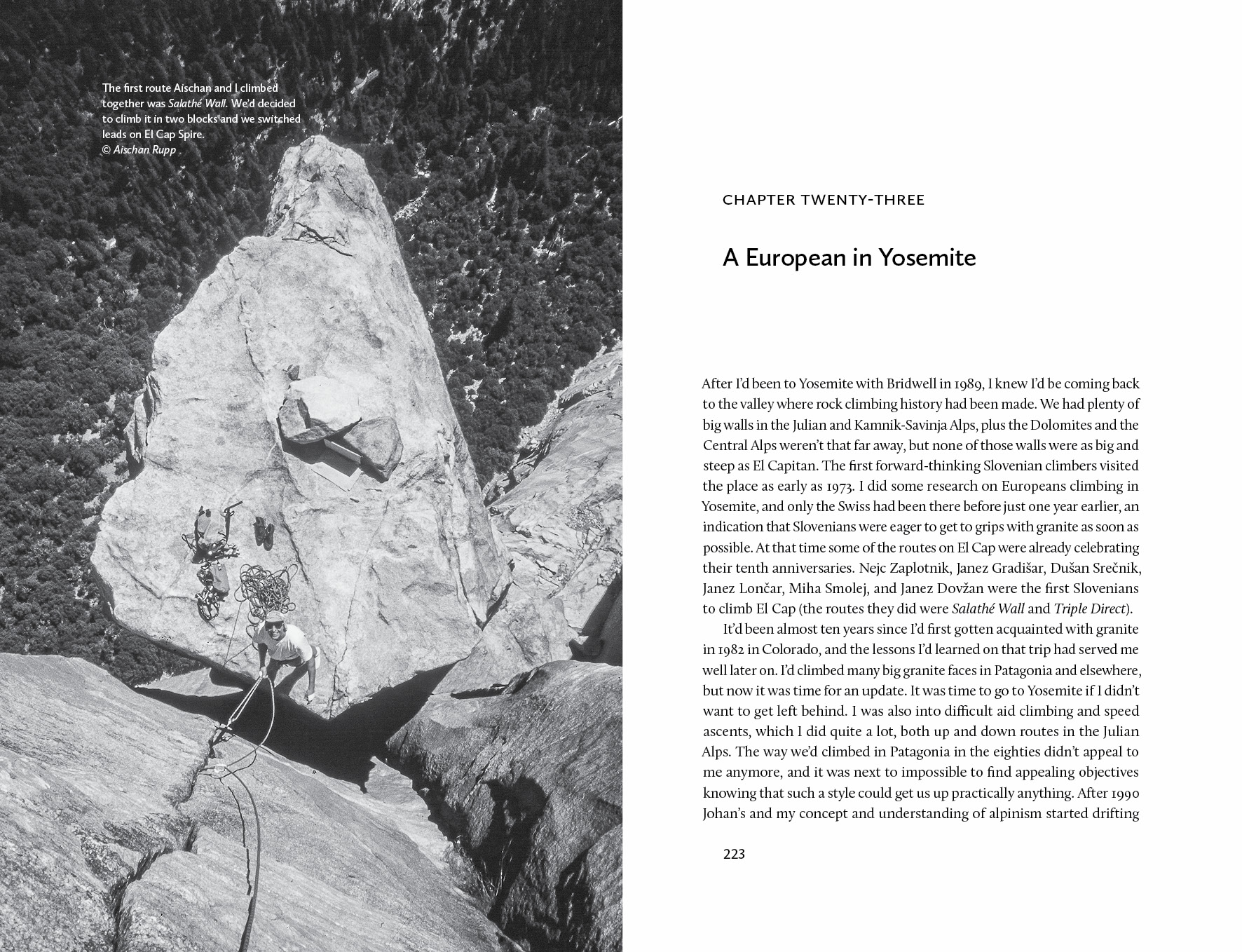 Alpinist – težko pričakovana avtobiografija protagonista zlate dobe slovenskega alpinizma, ki ga je klic gora s kmečkega podeželja popeljal do brutalnih patagonskih viharjev, prostranih višav Himalaje, ožarjenih dimnikov karakorumskega granita, grenlandskega obzorja, indijskega monsuna, yosemitskih navpičnih zidov in prelepih Julijskih Alp. Njegovo alpinistično kariero so najbolj zaznamovale velike stene Fitz Roya, Cerro Torreja, Torre Eggerja in Bhagirathija ter predanost, drznost, gorečnost in iskreno prijateljstvo, ki so rodili navezo treh mušketirjev – Silva Kara, Frančka Kneza in Janeza Jegliča – Johana. Sočno in doživeto spisane zgodbe iz plezalno nemara najplodnejšega obdobja slovenskega alpinizma!